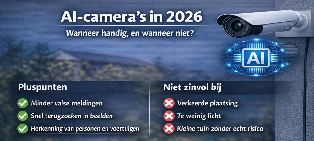 AI-camera’s zijn in 2026 vooral waardevol als ze je tijd besparen, loze meldingen verminderen en het terugzoeken van relevante gebeurtenissen makkelijker maken. Daar is de techniek inmiddels duidelijk sterk in geworden. Maar zodra AI vooral wordt gebruikt om een gewone camera duurder te maken zonder merkbaar voordeel in jouw situatie, is het vooral marketing.