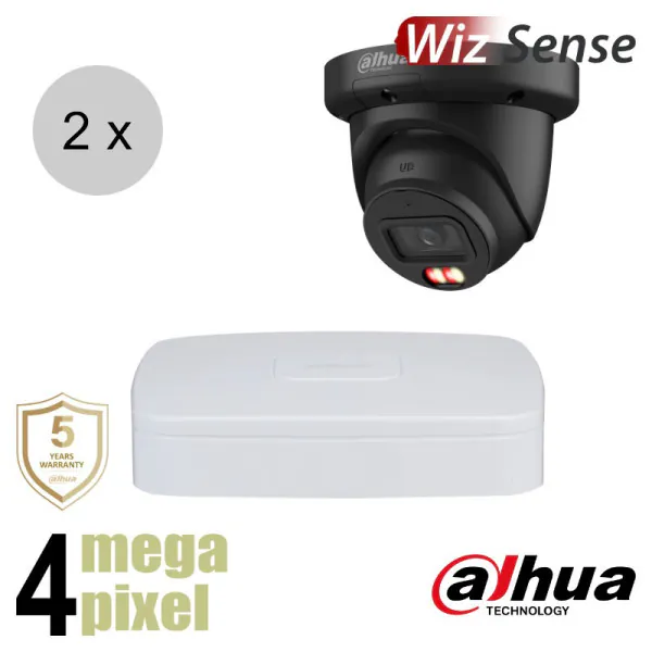 Dahua 4MP IP cameraset - WizSense - 2 turret dome camera's - dual light - audio - 2.8mm - 50m - ips24dt2