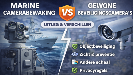 De marine en camerabewaking is iets anders dan gewone beveiligingscamera’s. Bij de marine draait het om maritieme veiligheid, bescherming van havens en vaarroutes en toezicht binnen een bredere militaire veiligheidsstructuur. Gewone beveiligingscamera’s zijn vooral bedoeld voor huis, winkel, erf of bedrijf en geven praktisch overzicht, preventie en bruikbare beelden.