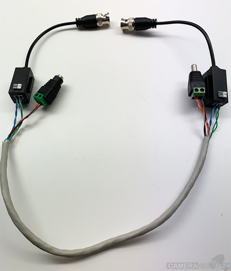 Het aansluiten van video baluns is erg eenvoudig. Allereerst sluit u de BNC kabel van uw camera aan op de BNC connector van de eerste balun. De tweede balun wordt door middel van een BNC kabel aangesloten op de BNC ingang van uw monitor of DVR recorder. Verbind daarna beide baluns met de UTP kabel. Voor de stroom kunt u een losse 12V plug aan de UTP kabel monteren.