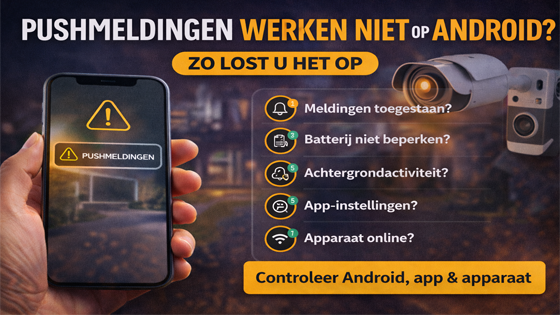 Ontvangt u geen pushmeldingen op uw Android telefoon van uw camera, recorder of intercom? Dan kan dat meerdere oorzaken hebben. In veel gevallen ligt het probleem niet direct aan het apparaat zelf, maar aan instellingen op uw Android toestel, de gebruikte app of de manier waarop achtergrondprocessen worden beheerd.